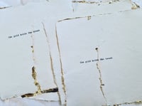 These drawings were made on tissue paper with eyeliner and gold ink. At any minute you think they might break.